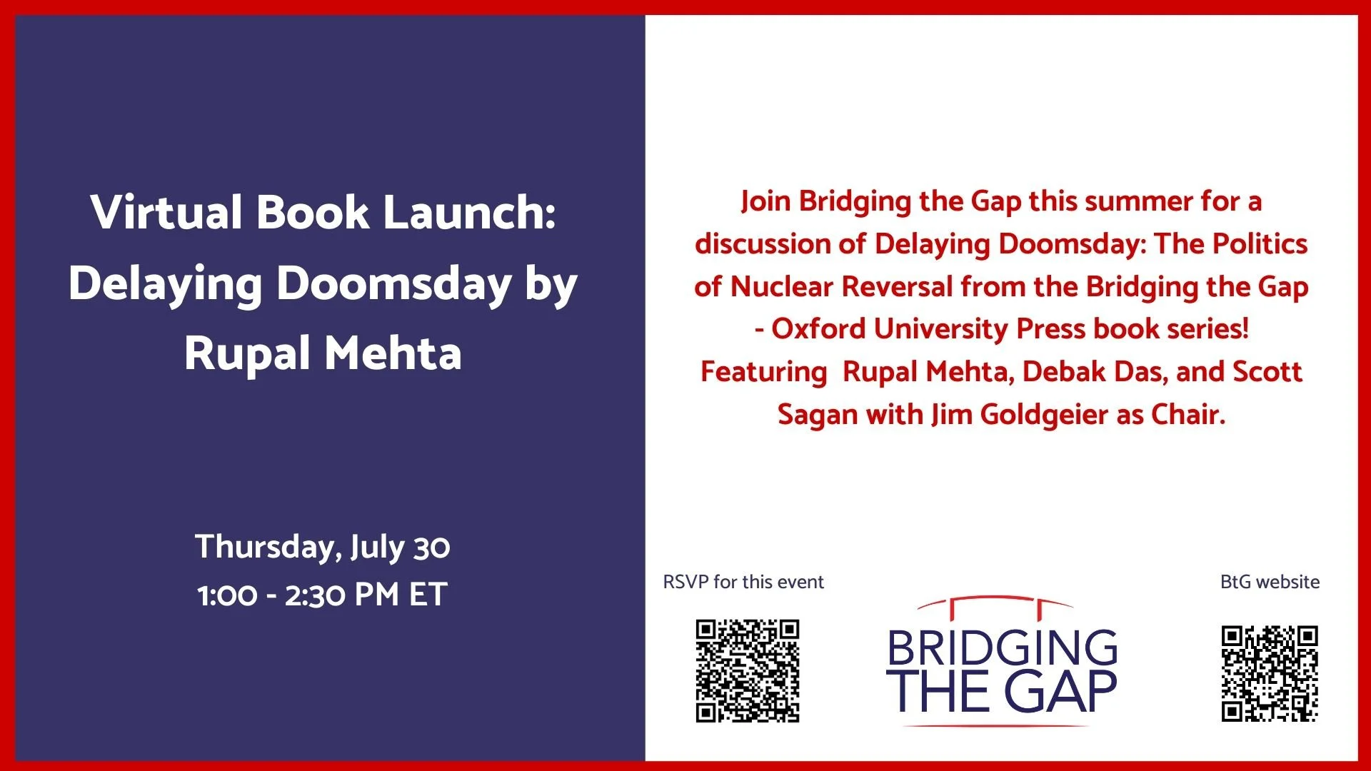 Virtual Book Launch of Rupal Mehta’s “Delaying Doomsday.” Part of the Oxford University Press’s Bridging the Gap Series. (July 30, 2020)